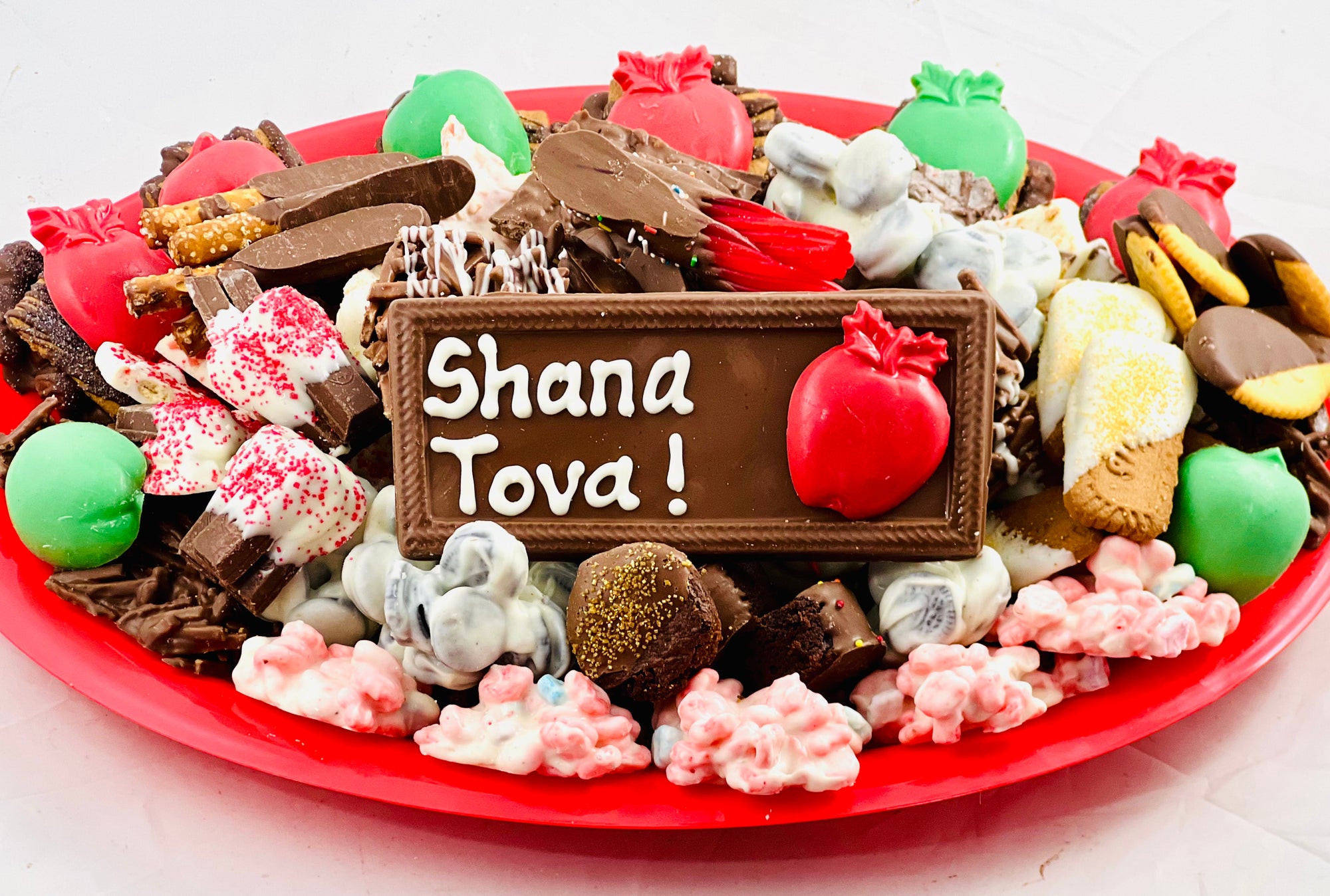 Celebrate the new year with a beautiful chocolate platter! Including a "Shana Tova" chocolate bar, chocolates assorted clusters, dipped cookies, s’more‘s, assorted chocolates barks, gourmet chocolate popcorn, chocolate apples molds, chocolate pretzels, cereal clusters and more!